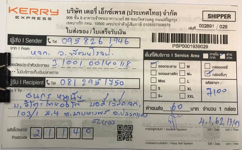 แจ้งส่งของวันที่04/01/2019 คลิ…