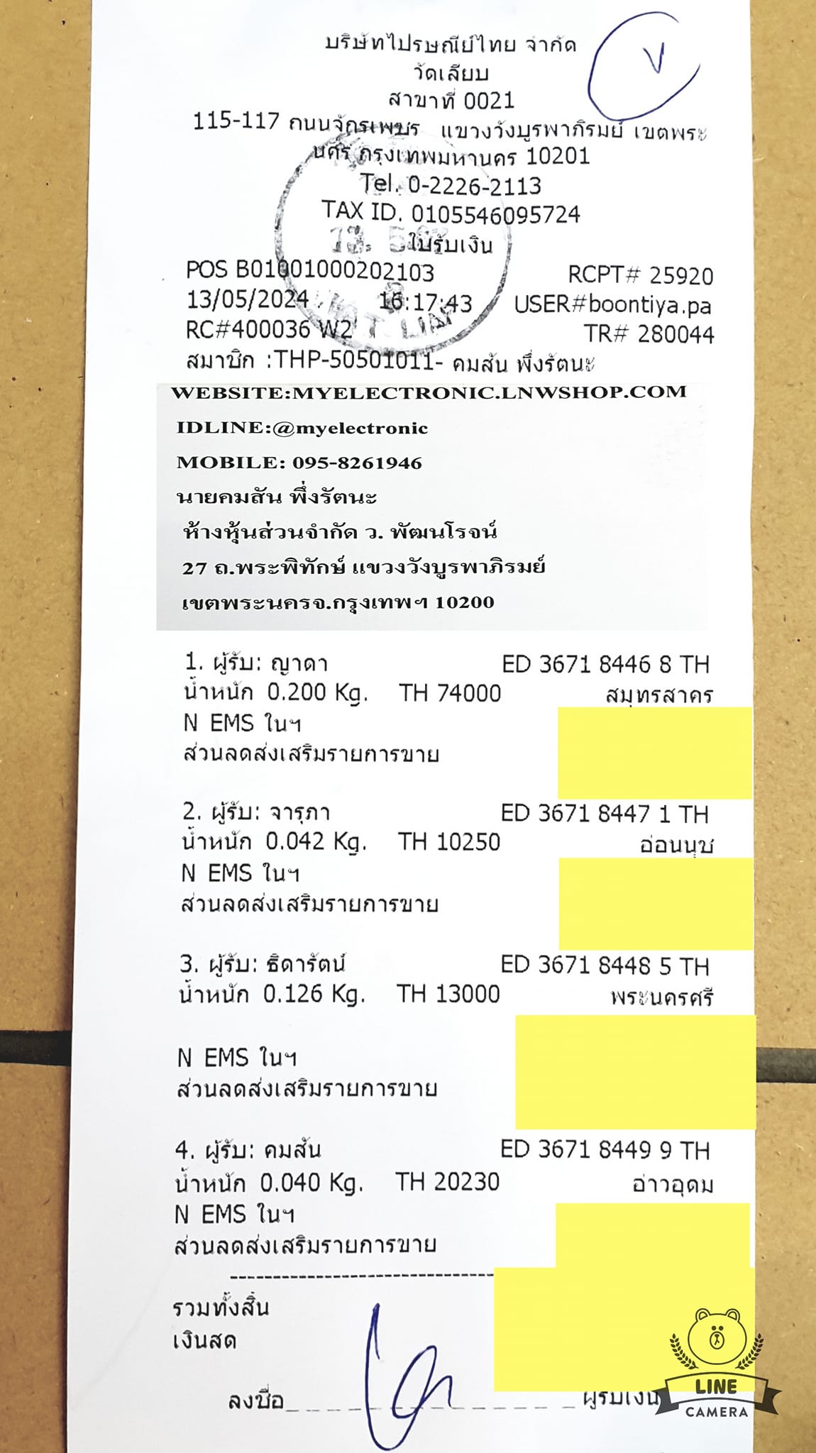 แจ้งส่งของวันที่13/05/2024คลิก…