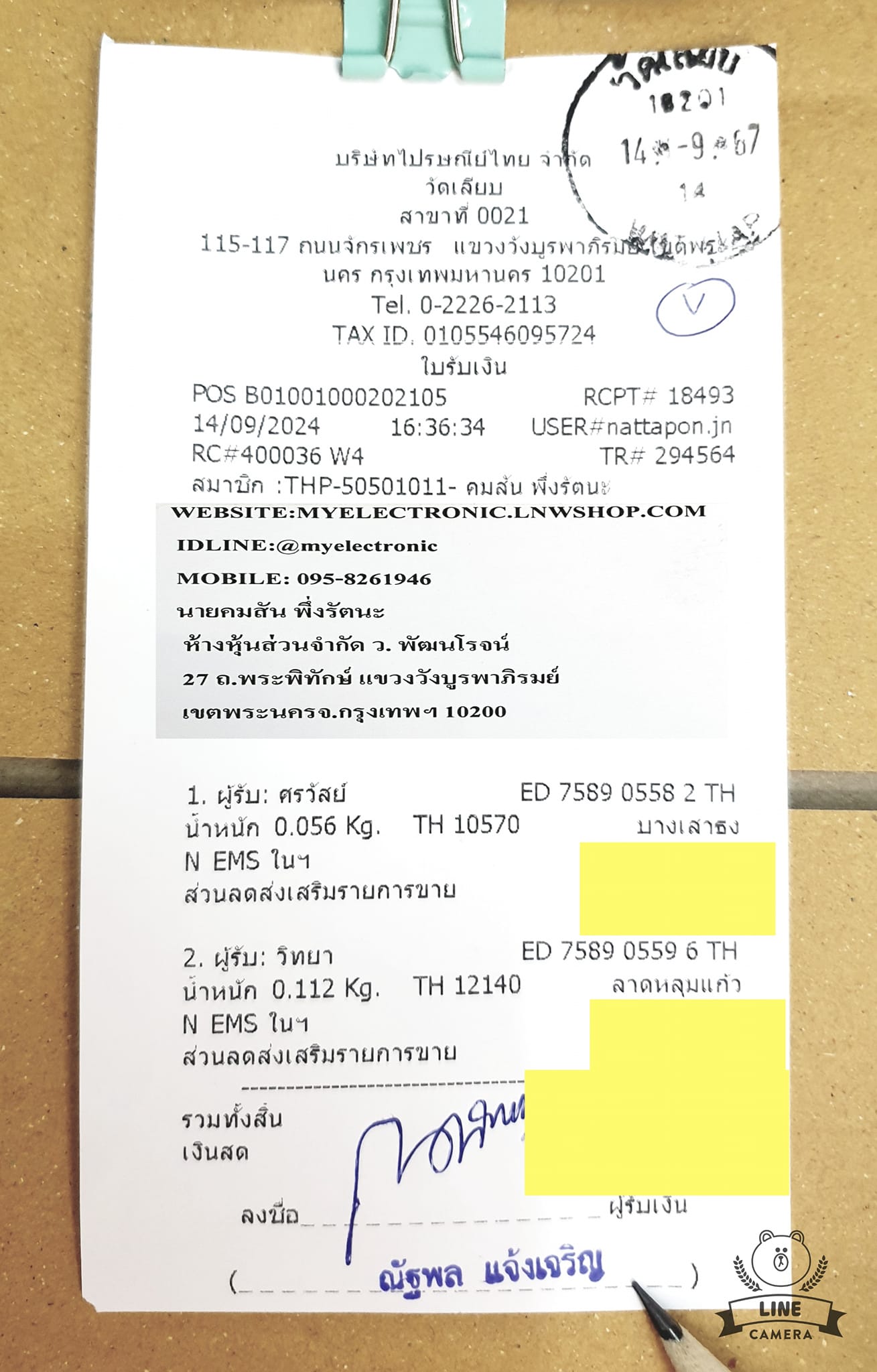 ใบส่งของวันที14/09/2024คลิกดูล…