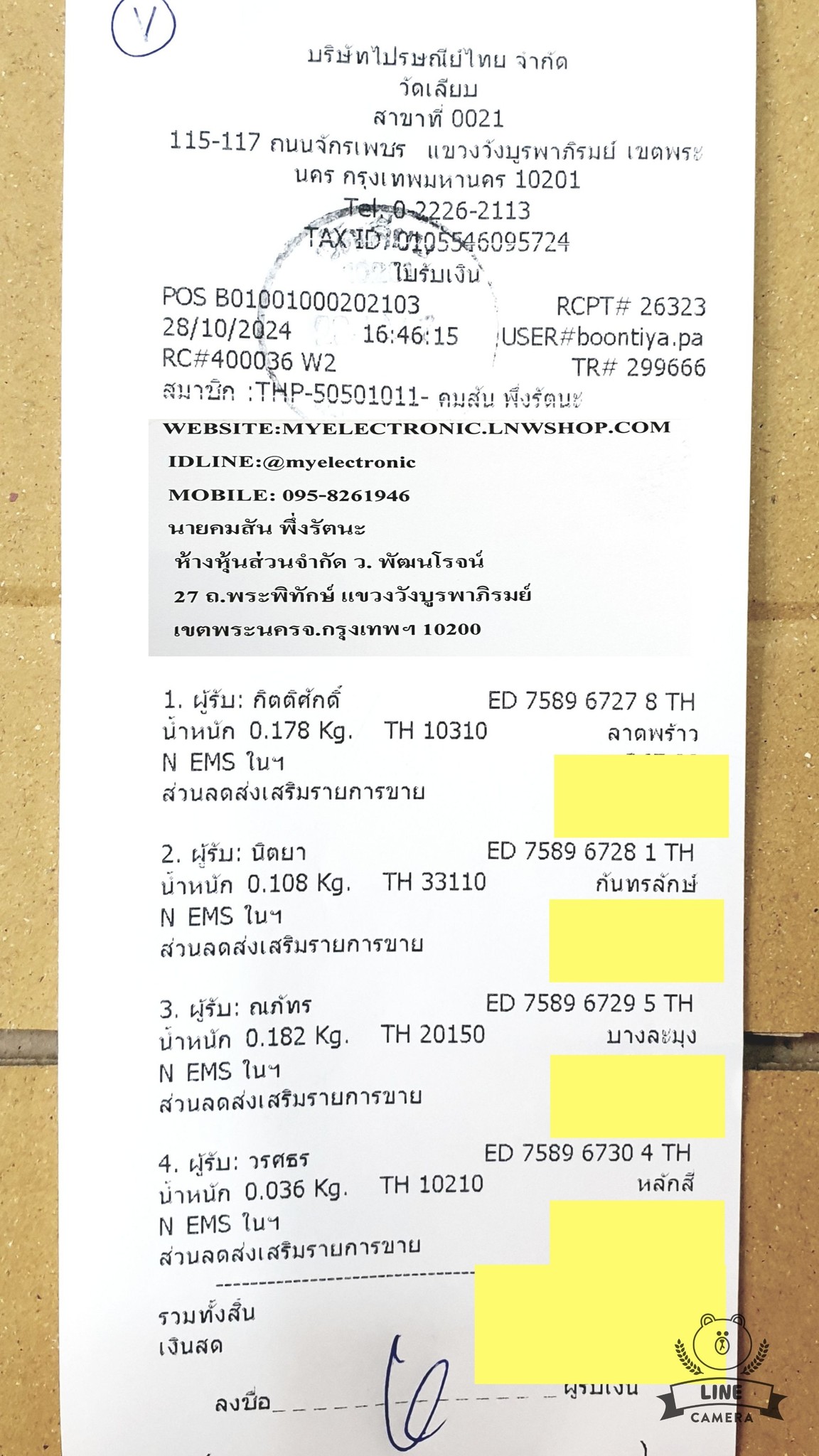 ใบส่งของวันที28/10/2024คลิกดูล…