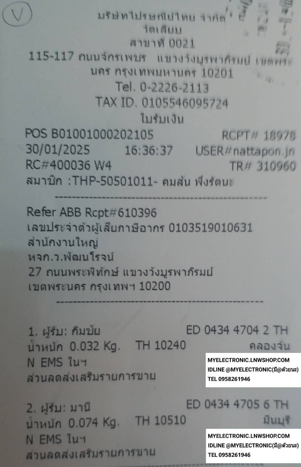 ใบส่งของวันที30/01/2025คลิกดูล…