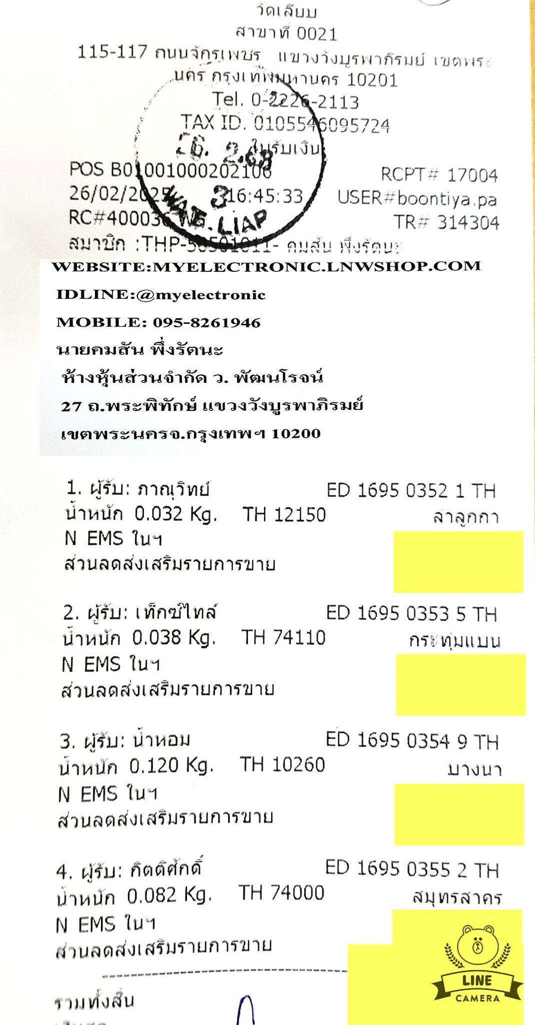 ใบส่งของวันที26/02/2025คลิกดูล…