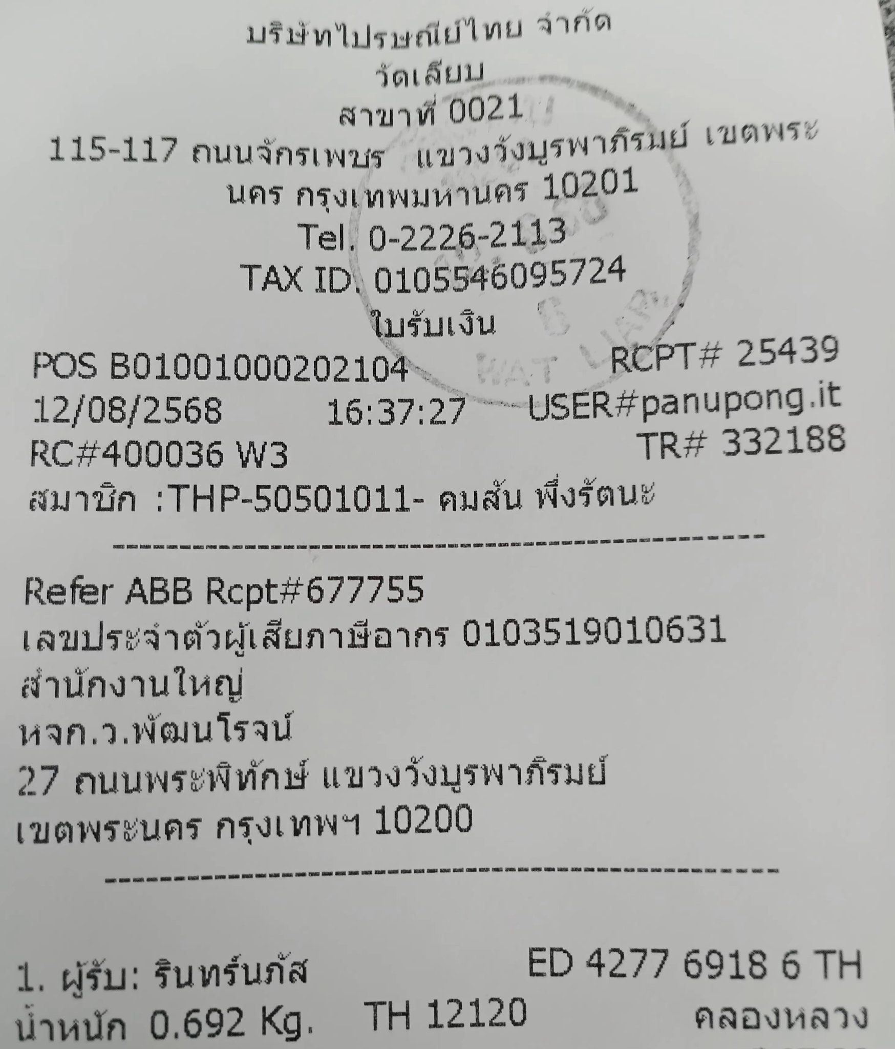 ใบส่งของวันที่12/08/2025คลิกดู…