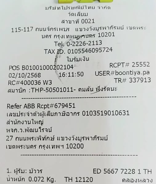 ใบส่งของวันที่02/10/2025คลิกดู…