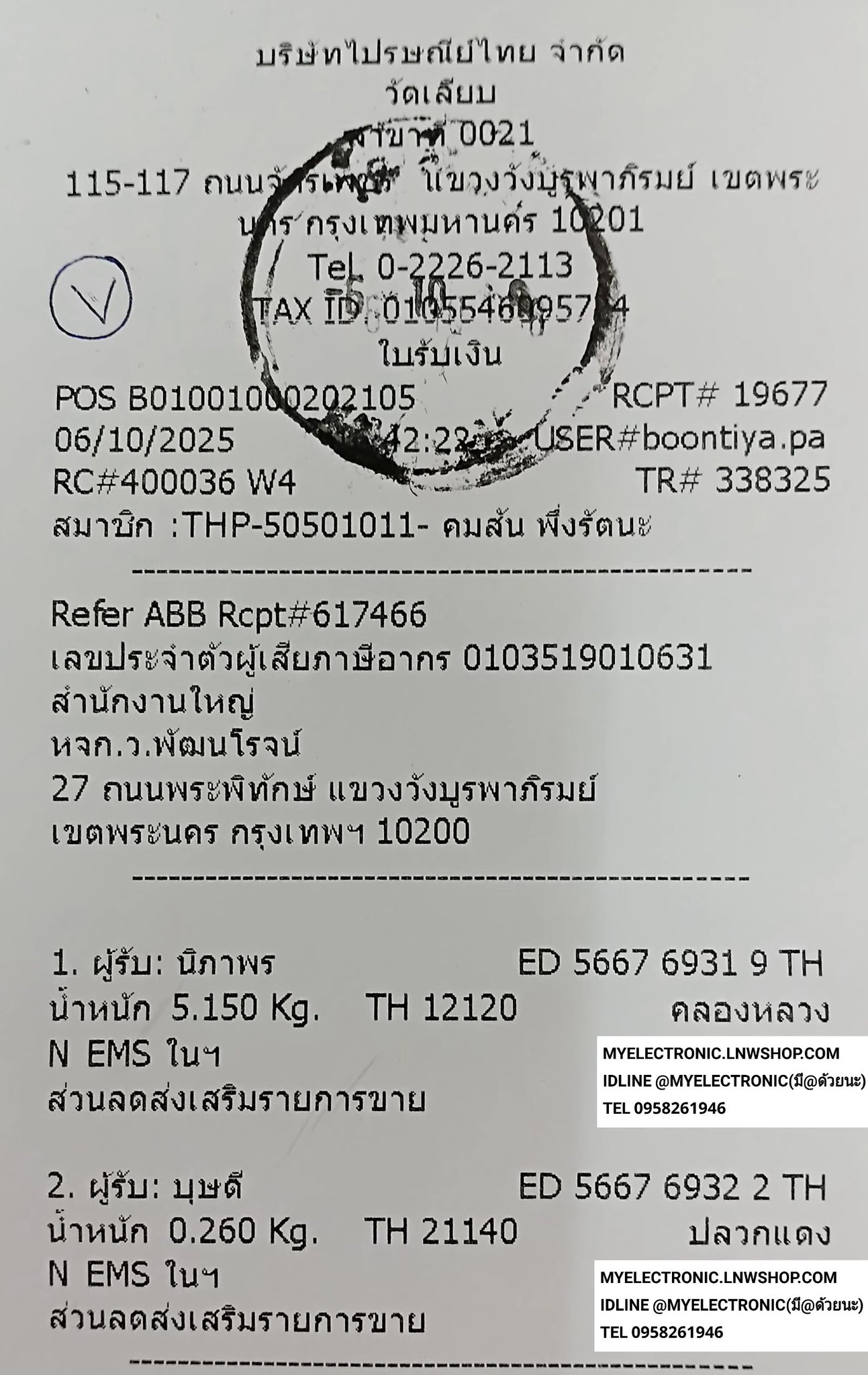 ใบส่งของวันที่06/10/2025คลิกดู…
