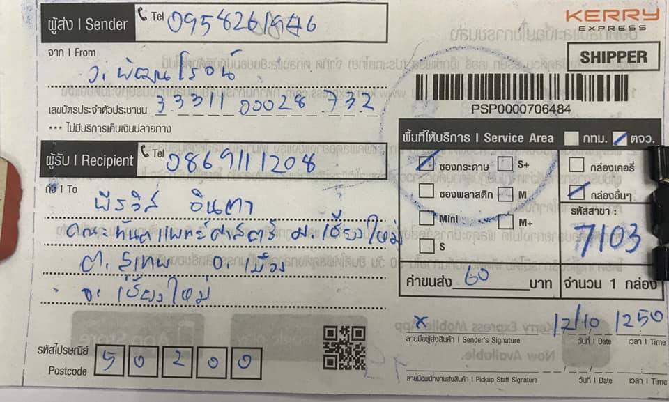 แจ้งส่งของวันที่12/10/2018 คลิ…